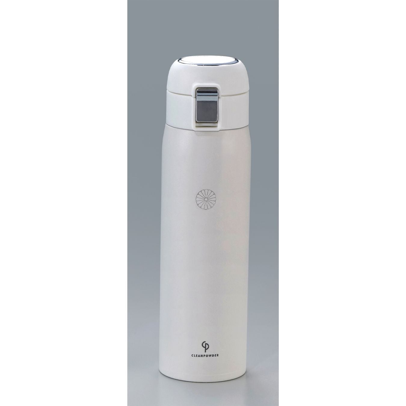 菊紋入 クリーンパウダー 真空二重構造 ステンレスワンタッチボトル 500ml ホワイト