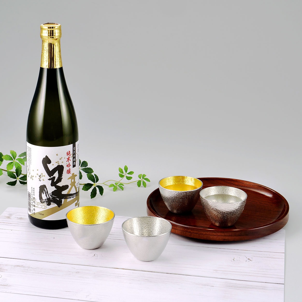 | 商品の紹介 | ◆錫100%の錫器 カンブリア宮殿などメディアで数多く紹介されている富山の鋳造メーカー「能作」の商品です。金箔は全国シェア99%を占める金沢のものを使用しています。 ◆金沢地酒 有限会社武内酒造店 金沢の北東部の山林に囲まれたしずかにたたずむ浮屋根土蔵づくりの小さな「泉蔵」で作られております。「泉」は、看板銘柄「御所泉」の新シリーズとして発売されました。辛口で切れ味抜群。インパクトがありながら穏やかな吟醸香と米の旨味が醸し出すふんわりまろやかな風味が楽しめます。 |