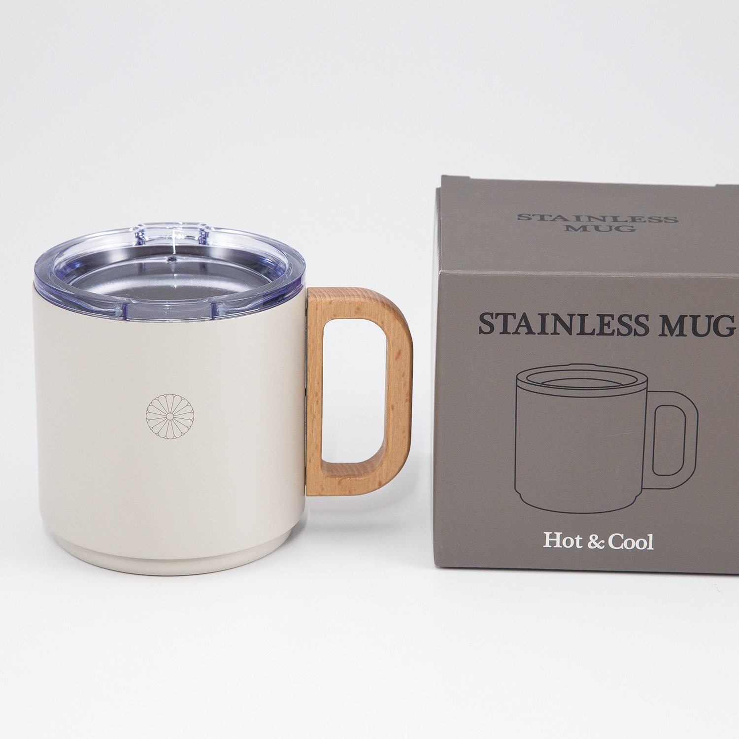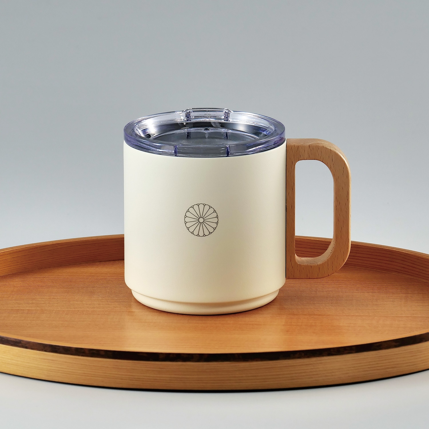 | 商品の紹介 | 優しく菊花御紋章が入っているフタ付のマグカップです。温かみのある天然木の持ち手が付いています。年中お使いいただけるものとしておすすめの記念品です。 【透明な直飲み用のフタ付き】 中身の量が確認でき、埃も防げるので衛生的です 【丈夫なパウダー塗装】 表面にキズが付きにくく、耐久性に優れています。 【パーツ】 フタのパッキンは取り外して洗えます。 |