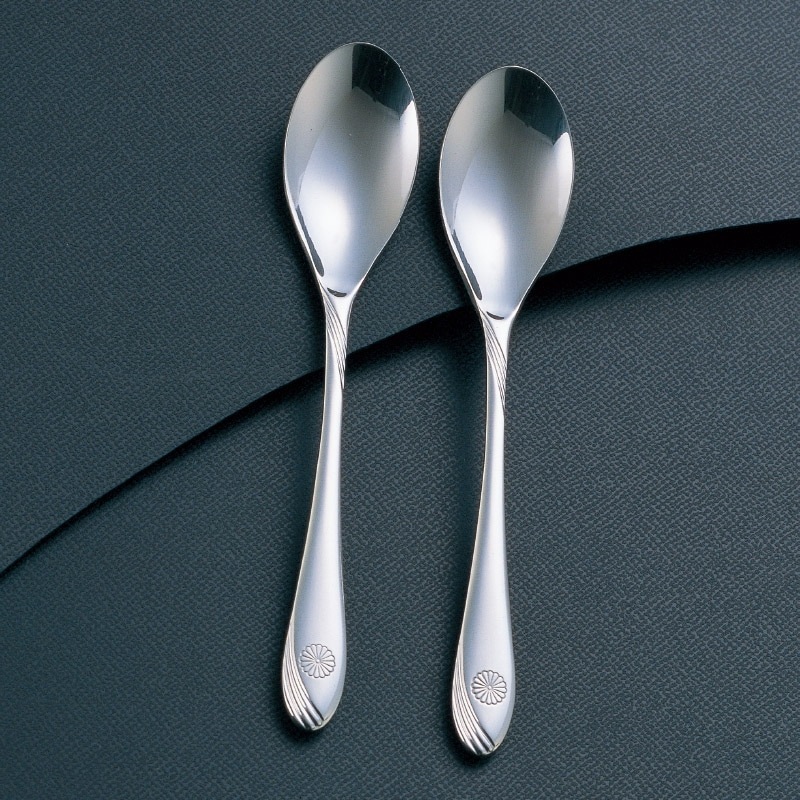 | 高級スプーンマーメイド2本入 | 流線デザインに一重菊紋が刻印で入っている美しいコーヒースプーンです。 商品:長さ12.5cm 18-10ステンレス 本体に一重菊紋 刻印入り 桐箱:約 高3.5×16.0×8.5cm ※新潟県燕市 |