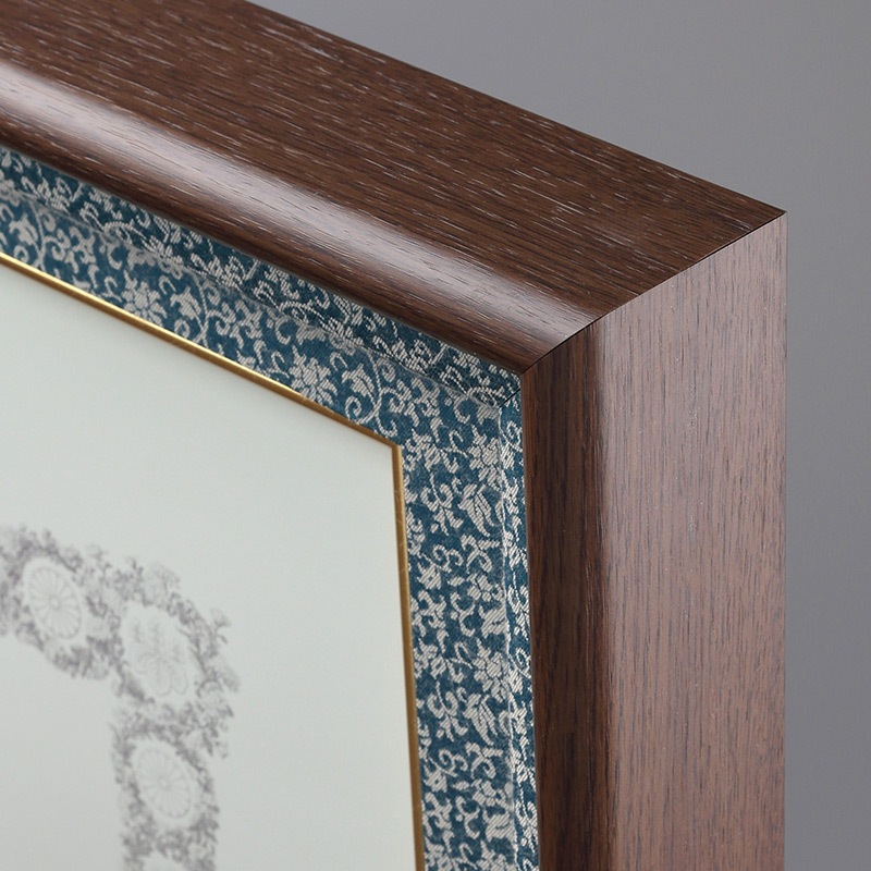 | 材質と額の接合 | [大和シリーズ]:洋材の木目調を採用(シート加工) [四隅の接合]:フレーム専用釘でしっかり固定 |