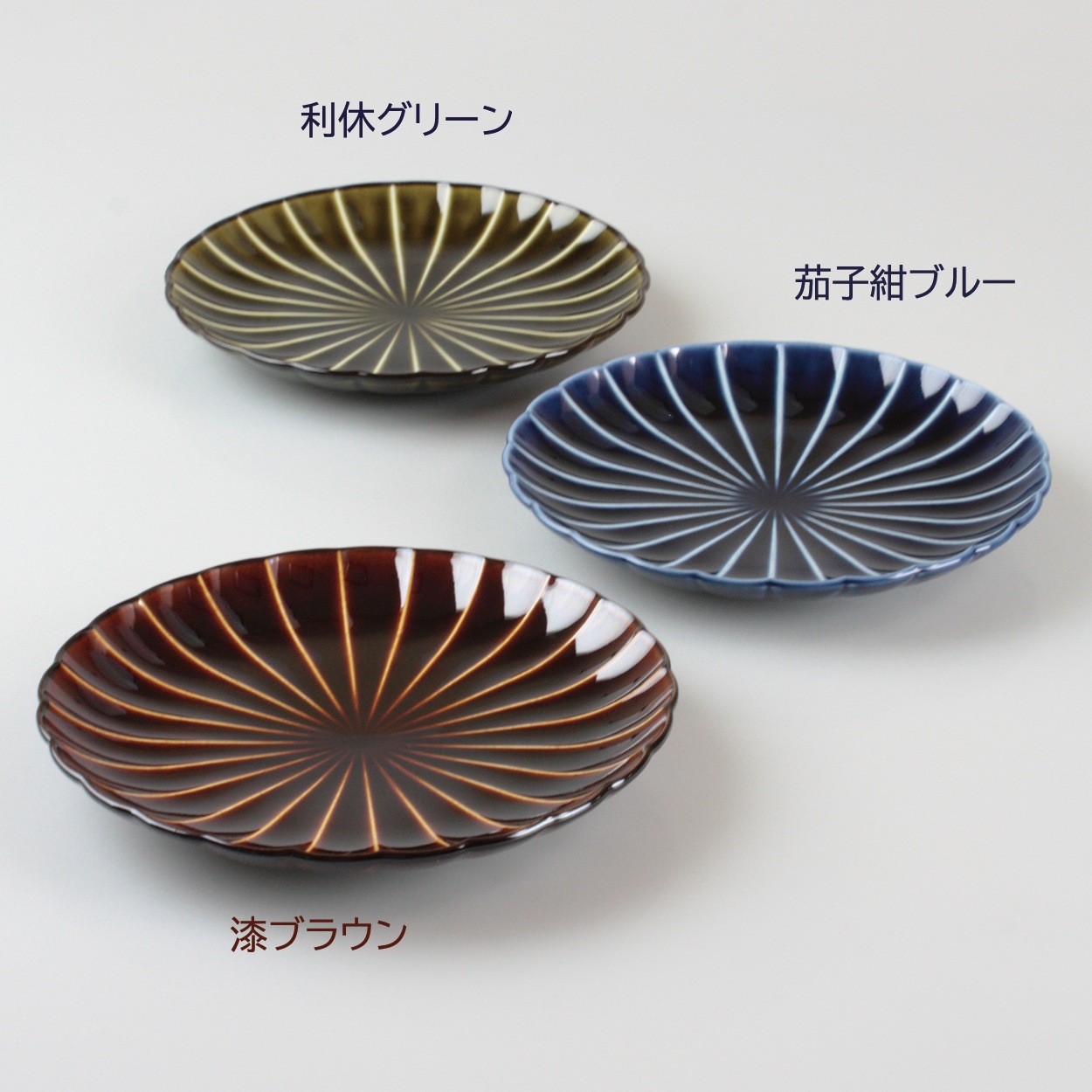 | 商品の情報 | 菊花皿6寸 利休グリーン 1枚入 美濃焼(本体に菊紋なし) 紙箱入(菊紋シール付) 日本製(岐阜県) |