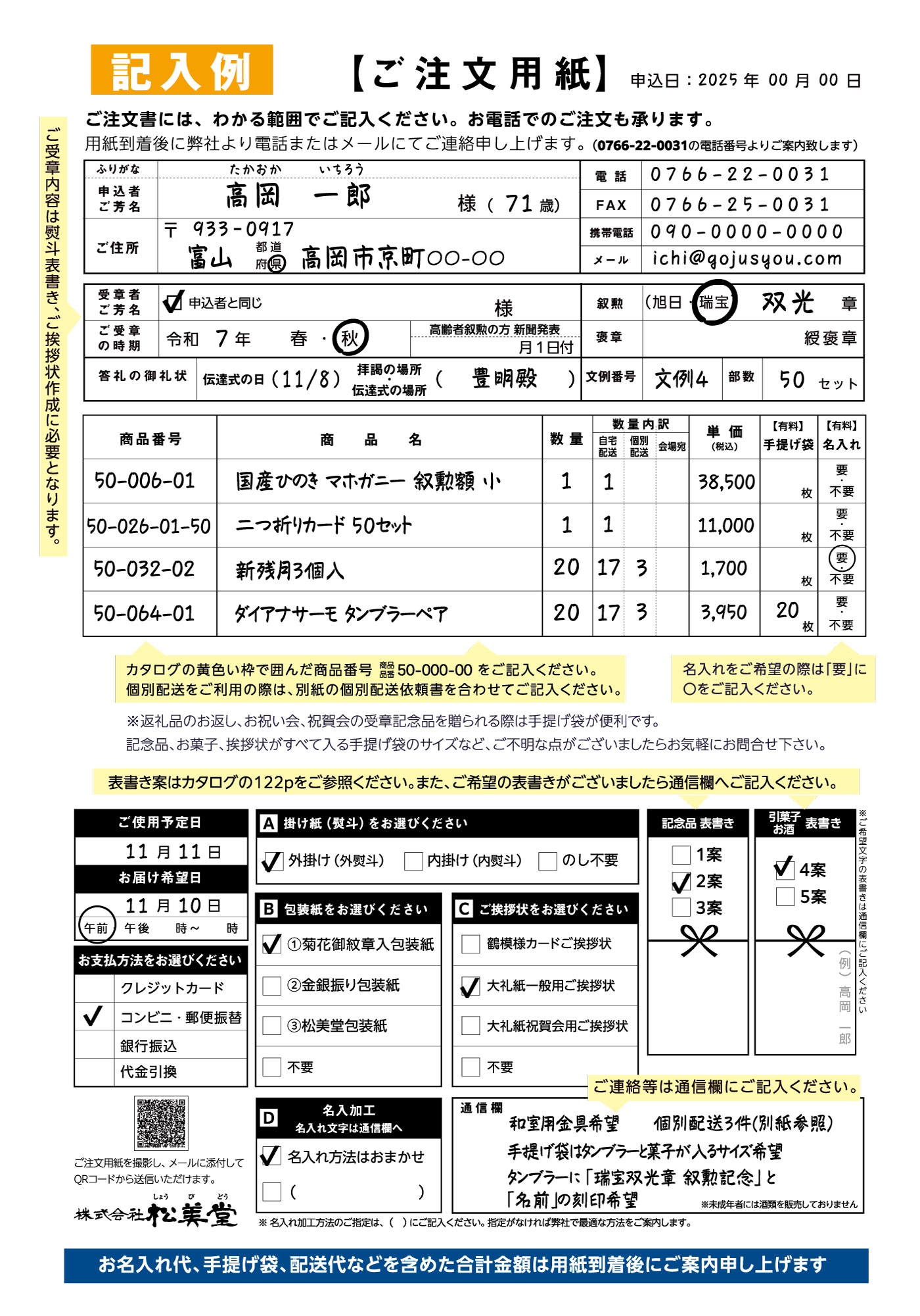 メール・LINEで送られる場合は、簡単便利な方法(印刷した用紙に直接書き込んでスマホやタブレットで撮影し、写真をメールに添付し松美堂へ送信)をご利用ください。 |
